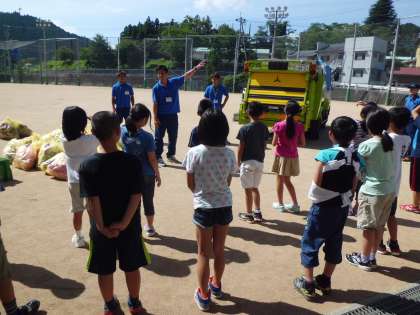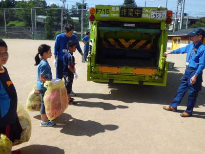 まち美化事務所とエコ町ステーションの方々に来ていただき,「パッカー車体験」をしました。子どもたちは「大変な仕事」「ごみを少しでもへらさないと」と声を出して活動していました。