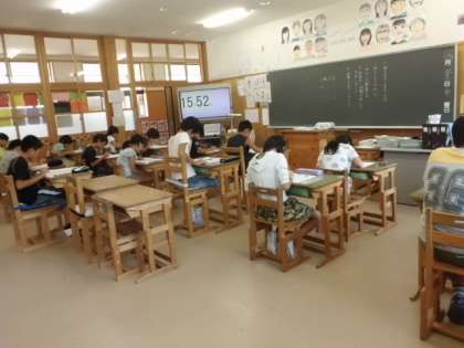 ジョイントプログラム【国語】と【算数】に取り組みました。5年生で学習したことも出題され,それも思い出しながら解いていました。時間いっぱい使って,集中して問題に向かっていました。