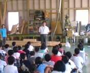 北桑田高校で先輩から木工を教えていただいています。また,森林リサーチ科の中国植林プロジェクトのお話も聞きました。
