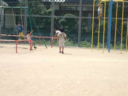 9月6日(火)昼休み,みんな遊びをしました。元気よくみんなで鬼ごっこをしました。とても楽しく遊ぶことができました。