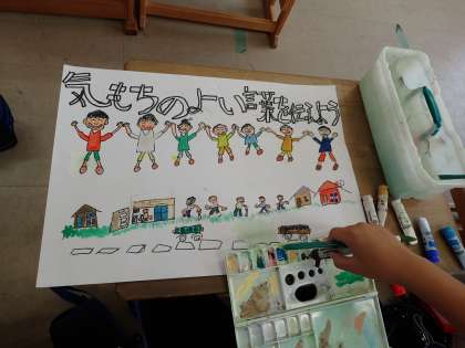 敬老の日にむけてポスターをかいています。ていねいに色をぬり,がんばって仕上げています。