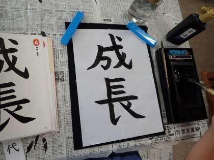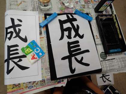 毛筆で「成長」という文字を書きました。筆順や字の形に注意して書きました。どの子も大変集中して取り組み,大変上手に書くことができました。