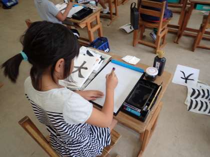 毛筆の「はらい」の書き方を学習しました。筆づかいが難しかったのですが,一生懸命練習しました。はらいの筆づかいに気をつけ「大」を書くことができました。