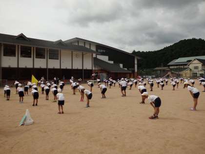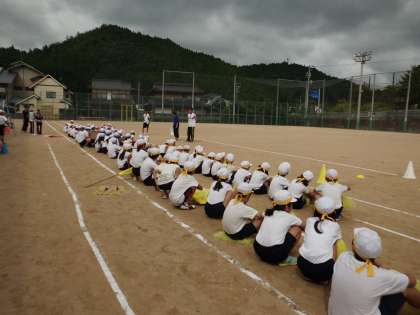 準備体操や応援合戦の練習をしました。競技だけでなく,並び方や入退場の仕方などをがんばって覚えています。