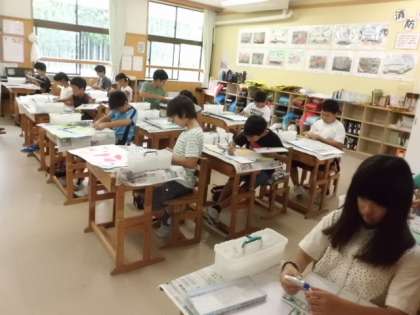 図画工作科の学習で“国際平和ポスター”に取り組んでいました。今日は,その絵を完成させました。優しい色づかいで,素敵に仕上がっていました。