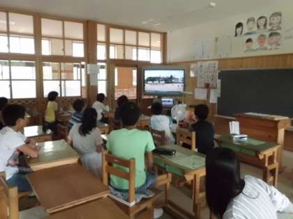 「美 〜協力する仲間たち〜」のテーマで力いっぱい演技した組体操。いろいろな思いを思い出しながら,笑顔でその映像を観ていました。本当によく頑張った6年生!