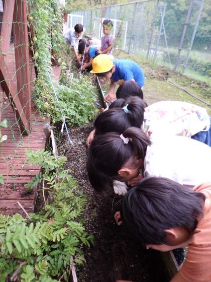 大根の種をまきました。国語で習った「おおきなかぶ」みたいに,あまいあまい大根ができたらいいな!と,おまじないを唱えながら,まきました。