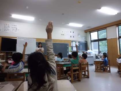 栄養教諭の先生に,楽しい食事について教えてもらいました。食べる時の姿勢や食器を持って食べることなどを確認し,これからどうしていけばよいかを話し合いました。