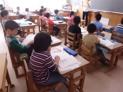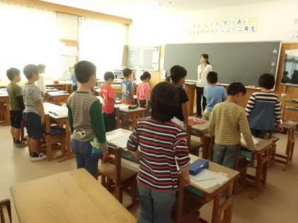 祖父母参観日,授業の始まりです。子どもたちも少し緊張気味です。