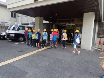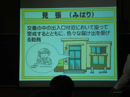 京北交番を見学しました。警察の方の仕事内容はもちろん,24時間勤務のことや,事故や事件で勤務予定が変わったりすることなどをていねいに教えていただきました。子ども達は初めて知ることに驚いていました。