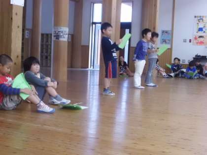 前時に引き続き,台本の読み合わせをしました。一段と大きな声でセリフを言う姿が見られました。