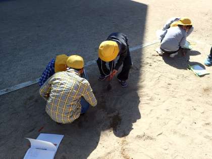 日なたと日かげの地面について比べました。温度計を使い温度をはかりました。あたたかさの違いについてはっきり理解できました。