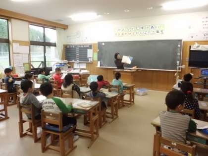 読書週間に合わせて,今月も地域の方に,読み語りに来ていただきました。やさしく語られる物語に吸い込まれるように,子どもたちは静かに聞き入っていました。