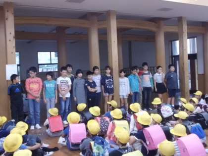 いよいよ大文字駅伝支部予選会が行われます。放課後の練習も頑張ってきた6年生。出発にあたって,自分たちの思いを話し,そのあと5年生からあたたかい応援の言葉ももらいました。