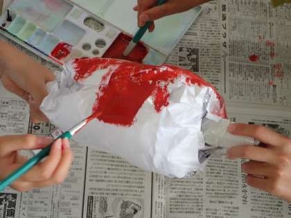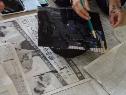 学習発表会にむけて,道具や背景作りをしています。自分達で工夫して協力して進めていくことができています。