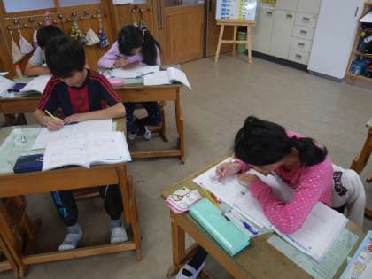 算数では,分数のたし算とひき算の学習をがんばっています。
