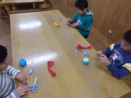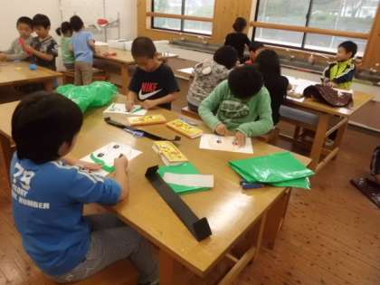 学習発表会に向けて,小道具作りをしました,お面や飾りを楽しそうに作成していました。