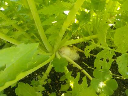 学校園で育てている野菜が順調に成長しています。ダイコンの葉はどんどん大きくなり,ハクサイもしっかり根がつきました。水やりもしっかりして収穫を楽しみにしています。