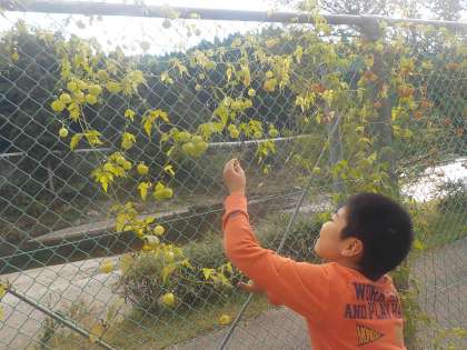 生活単元学習の時間に秋みつけをしました。草の実を体にくっつけたり,フウセンカズラの実を潰したりして触った感じや音を楽しみました。