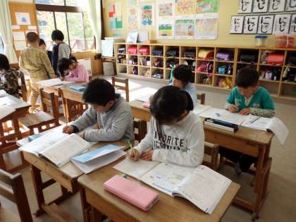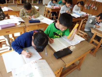 位に気をつけて,計算をしています。今日から3ケタで計算をしましたが,楽しんで取り組んでいました。