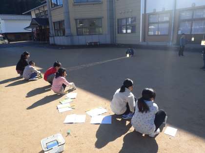 「日光を鏡で集めると温度が上がるのか」を実験しました。2枚,3枚と鏡を増やして実験しました。鏡を固定させると集めやすいことに気づき,大変意欲的に活動する様子が見られました。どんどん温度が上がっていく様子に驚いていました。