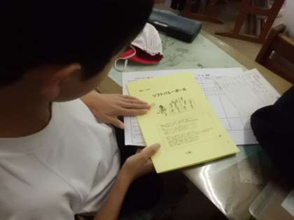 これから,ソフトバレーボールの学習に入ります。今日は,その学習カードを作成しています。