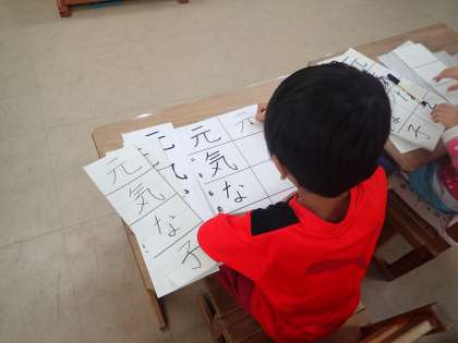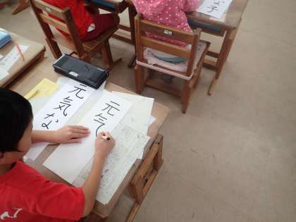 書写の時間,フェルトペンを使って「元気な子」という字を書きました。用紙いっぱいに大きく書くことが難しかったですが,一生懸命練習できていました。