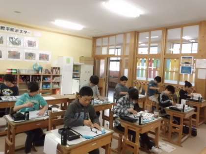 書写の時間に,「伝統」という字を書きました。姿勢に気をつけながら丁寧に書くことができました。