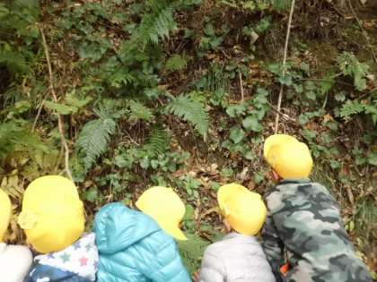学校の外へ秋見つけに行きました。どんぐりや色のついた落ち葉など,秋のものを見つけていました。