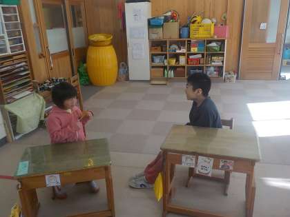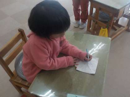 「手紙」をつかって思いを伝え合う遊びをしました。思いを手紙に書くこと,読むこと,読んでもらうこと,待っていることすべてが嬉しく,ずっと笑顔で活動していました。