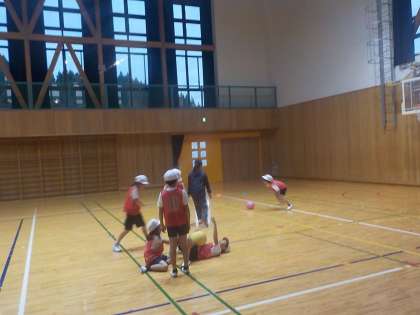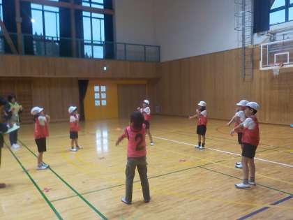 体育の学習で3年生と一緒にエンドボールに取り組んでいます。エンドボールは,攻守がすぐに変わるり自分が今どこに行けばよいのか,どこへ投げればよいのか判断するのかがとても難しいゲームです。攻める時,守る時,ゴールマンの時,ガ−ドマンの時どのように動けばよいのか,事前に確かめておくことでしっかり動くことができました。ガードマンでボールを止めることもでき,嬉しくなりました。