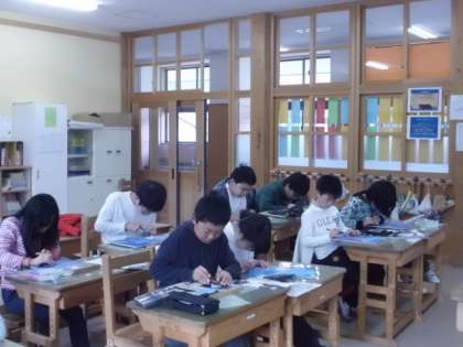 図画工作科で,版画に取り組んでいます。丸刀や三角刀などを使い分け,自分の思いが表現できるように,工夫しながら彫っていました。