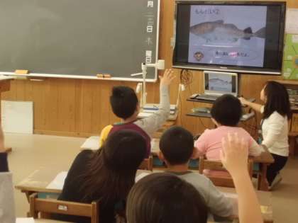食に関する指導を行いました。子どもたちは,栄養教諭から魚に含まれている栄養や働きを学習しました。