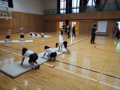 5時間目,マット運動をしました。回数を重ねていくうちに慣れ,自分達ですぐに準備し体慣らしなどしているところです。