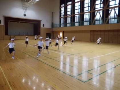 かけあし跳びをしています。前に来たなわを,うまく跳び越えられるかな。