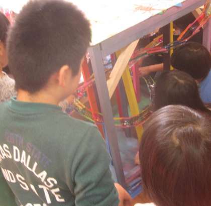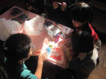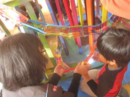 2回目の小さな巨匠展作品作りをしました。今回は,先週作ったペットボトルのコースを組み立てたり,転がすボールを作ったり,飾り付けをしたりと役割分担をしながら作業を進めました。コースができ始めてからは,ボールがちゃんと転がるのか確かめたり,コースがしっかり固定できているか確かめたりしていました。最後に出来上がった作品を見ながらみんなで考え「レインボーコロコロコースター」という作品名に決定しました。次回は,年明けに集まって作品で遊ぶ予定です。