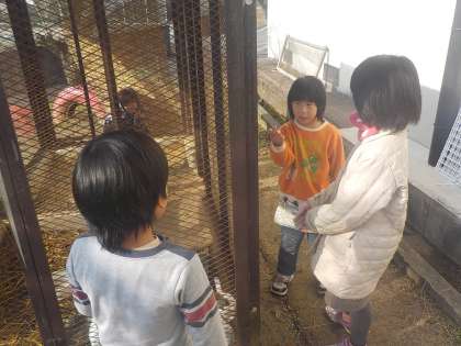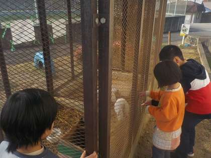 休み時間には,飼育小屋のウサギを見に行きました。京北第三小学校の3年生の友達が名前など色々教えてくれました。