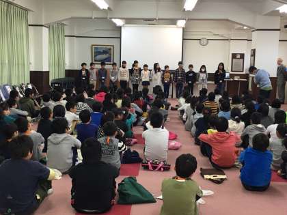 生き方探究館に到着しました。今日,一緒に活動する京北以外の学校も含めて,全体ミーティングを行っています。