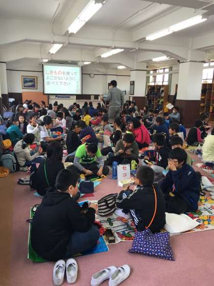 昼休みもブースごとにまとまって昼食です。買った品物を見せ合いながら楽しく食べています。