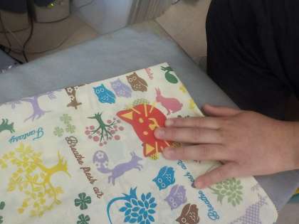 アップリケをアイロンがけしてかわいい作品ができあがりました。