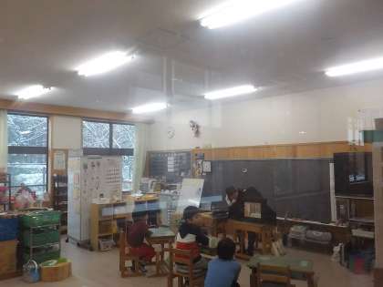 紙芝居で「なぜクリスマスツリーを立てるのか」「かさじぞう」の2つのお話を読み語りをしてもらいました。