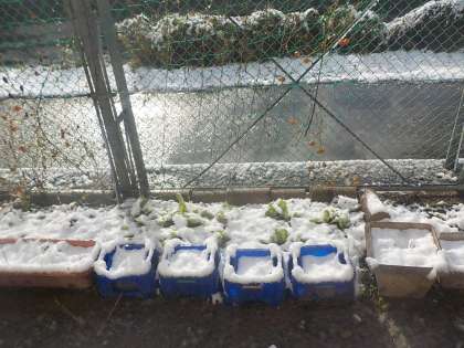 生活単元学習で育てている野菜たちも雪で埋もれてしましました。寒いけれど頑張って大きくなってほしいです。