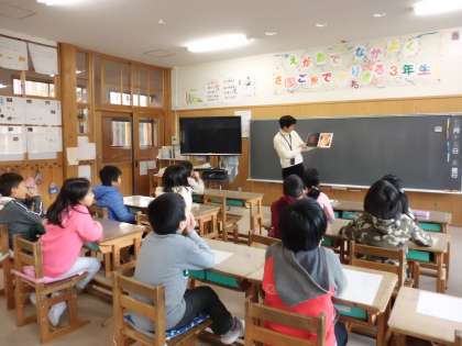 今回は先生が各教室に読み語りに行きました。いつもと違った雰囲気で物語を楽しみました。