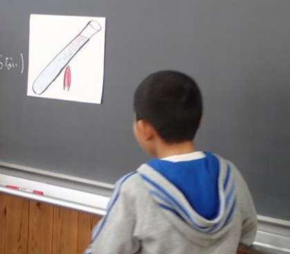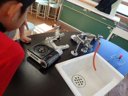 水の温まり方について考えました。「なぜ上から温まるのか」「なぜ温めた所はあたたまらないのか」を話し合いました。その後,確かめる実験をしました。