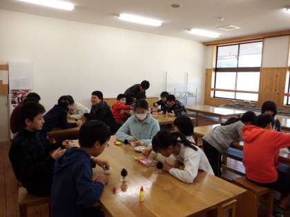 ひかり学級の友達と一緒に,クリスマスツリー作りを楽しみました。まつぼっくりに飾りをつけて,すてきな作品を仕上げることができました。