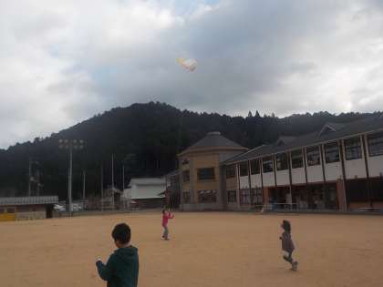 合同学習の最後に,運動場でたこあげをしました。外は寒かったのですが,たこをあげるのが楽しくて,元気に走りしっかり体を動かす事ができました。