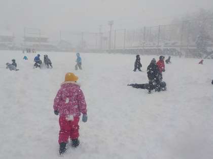 雪が降り,運動場でいっぱい遊ぶことができました。今年度初めての雪に子どもたちは,目を輝かせながら雪を楽しんでいました。
