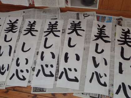 習字で「美しい心」を練習しました。12月から何回も練習し,とても上手になりました。冬休みご協力いただきありがとうございました。来週から2階ホールに展示しますので,ぜひご覧ください。