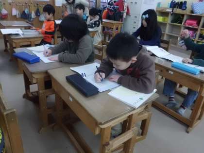 詩を書く学習です。今日は,まず見たことや感じたことをメモしています。