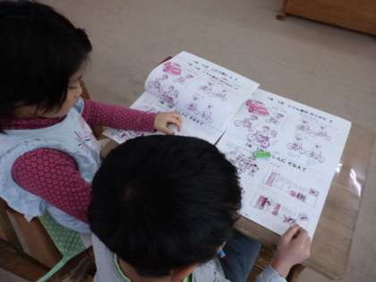 なにかが起きた時も,あわてず騒がず落ち着いて避難できるように学習しています。